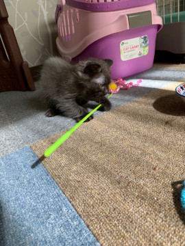 猫?なのと思うぐらい、足が太いです・・・・。毛色も変わっており、見たことがないです。現在は、長毛で、ふわっとしており産毛のようにふわふわしております。将来は短毛かもしれないです。