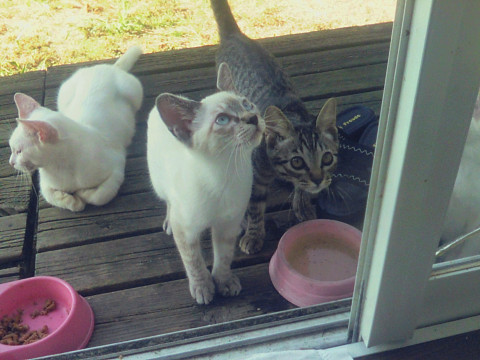 シャムミックスの元気な男の子で耳がこげ茶・全体に薄いベージュで白に近いです。