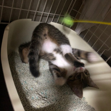 おもちゃで遊ぶと、怖いのはすっかり忘れて夢中で遊びます。撫でるとゴロゴロいいます。