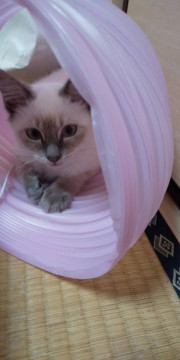 とても元気で人懐こく、手作りの毛糸のおもちゃで遊ぶのが大好きです。
