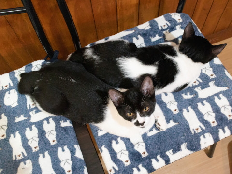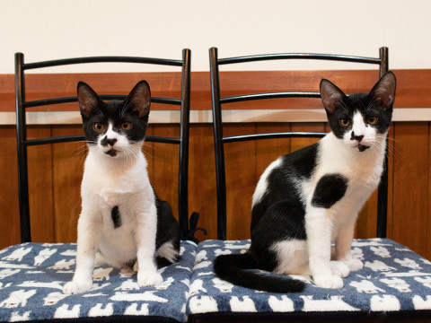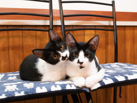 顔の模様がそっくりのシンクロ兄弟です。体の模様は違います。