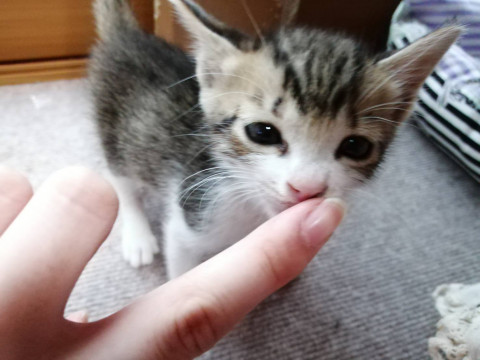 ミルクボランティアさんに大事に育てて貰いとっても可愛く育ちました。ミルクから育てたのでとても人懐っこいです。トイレの躾も済み。