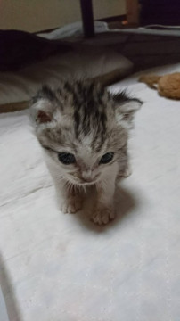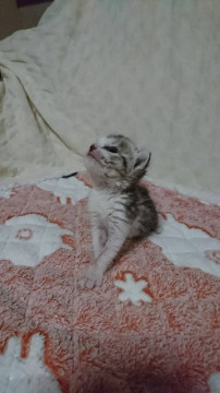 お母さん猫避妊しようとしてもなかなか捕まらなくて、避妊出来なくて産まれた子猫ちゃんです。子猫ちゃん産まれて直ぐに捨てようとされた為に可哀想に思い保護されました。良くミルクも飲んで、スクスク育ちました。