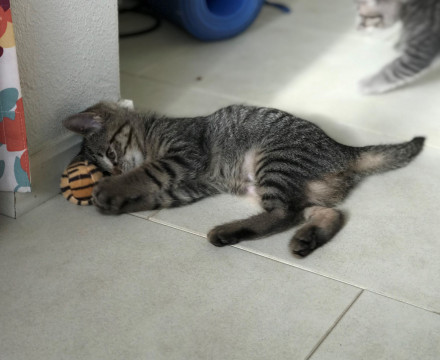 子猫なのでこれから隠転する可能性もありますが、エイズキャリアであることを