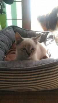 大きな音などにびっくりしたり、子猫らしい一面があります
