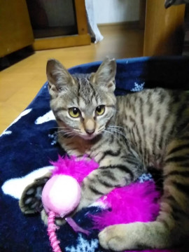おもちゃが好きで、大人の猫にも物怖じしません。