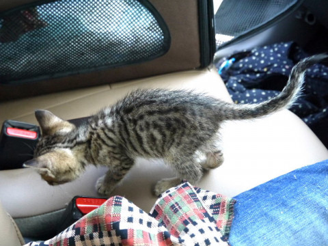 道路の傍、お寺へ登る階段の所で1匹で動けない状態でいるところを保護しました。