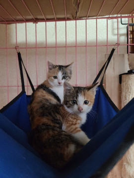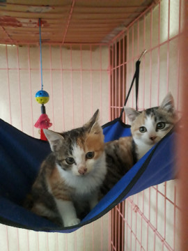 コロコロして可愛いです、チュールに釣られて保護となりました、三毛猫模様も綺麗な子です。