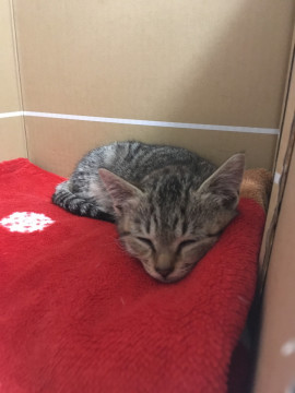 近所で生まれた野良猫のうちの1匹です。玄関先で寝ていたところを保護しました。