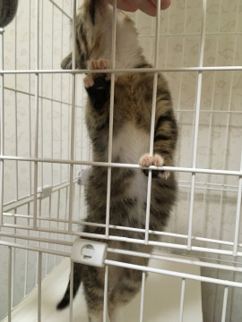 初日は寝床とトイレしか使っていませんでしたが、翌日にはケージの天板を2段3段と駆けています。