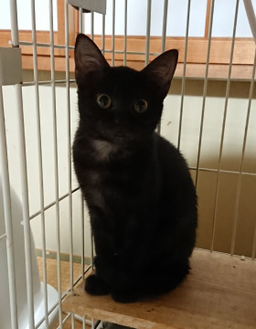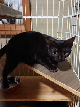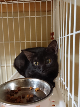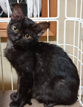保護してから食欲旺盛で何の心配もない子です。黒猫好きの方!一風変わったブラックタビーのまめちゃんを、家族にしていただけませんか?