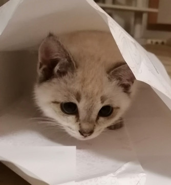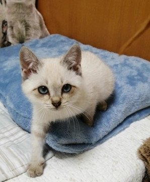 同年齢と遊びたい盛りに、お相手が いないため 困ったことに人の手をおもちゃと勘違いして噛んだりします。しばらくの間、同時募集中のシャムの乱太郎くん(別の預かりさんのお家にいます)と一緒に遊ばせながら 噛み具合の特訓をしたいと考えていますが・・・ 今は ネズミのおもちゃを投げたり、追いかけたり、一人でも 元気に走り回り遊んでいます。