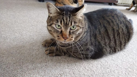体は大きいですが、甘えん坊で撫でられるのが大好きな落ち着いた子です。