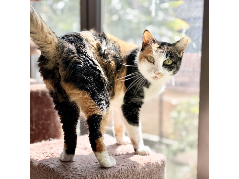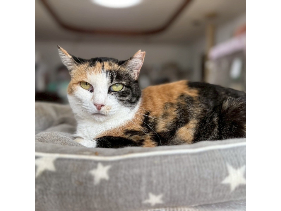 ○推定9-10歳くらい(2025年4月時点)の茶色多めの三毛の女の子です。