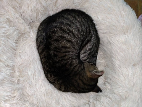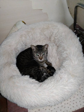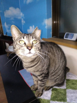 とても人懐こく、知らない人の膝にも乗ります。年齢は推定ですが若いです。