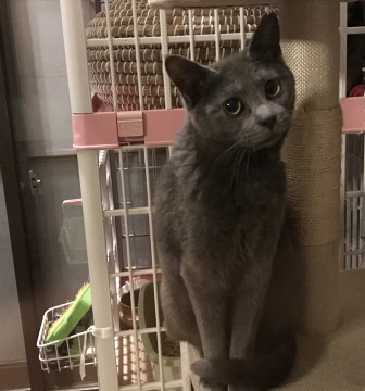 綺麗なグレー柄です。ロシアンブルーの様です。とても穏やかな性格でとっても可愛いです。猫ちゃんのお友達でも一匹でも飼いやすい猫ちゃんです。