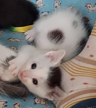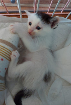 6年前に関わったエサやりさんからの情報で身重の猫がいるとのことで、見に行く予定の日の朝5時に出産し親子を保護しました。ママ猫は人に良く馴れていて半長毛の綺麗な子です。