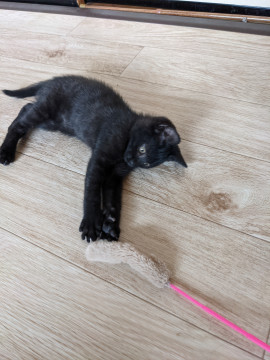 今の所真っ黒ではないです。元気で大人の猫にも動じす仲良く出来てます。ゴロゴロ甘えん坊です。