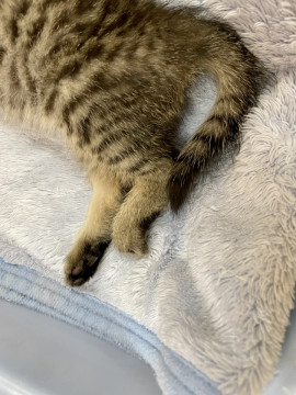 左後脚は少しずれてくっついてしまっていますが、本人はその脚で器用に歩きます。