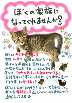 この子の状態を理解し、深く愛してくださる方。家族の一員として大切に迎え入れてくださる方。