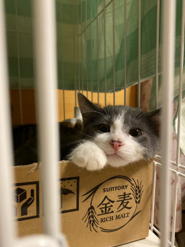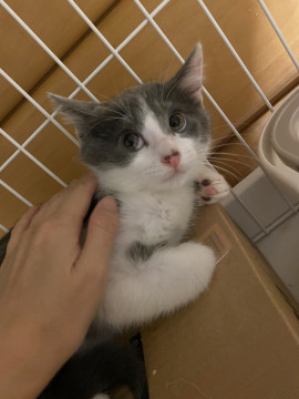 綺麗なグレーのハチワレ猫ちゃんです。尻尾も長くてスラーとしています。猫ちゃんのお友達にもまた一匹でもお留守番もできますので、共稼ぎの方にもぴったりです。