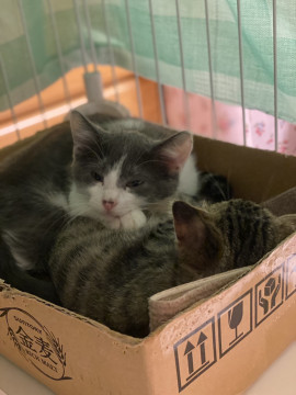 避妊しないでお家と外を出入りしているお宅で産まれた猫ちゃんです。近隣の方がとても良い方でそのお母さん猫避妊してあげようと努力されましたが、捕まらなくて子猫4匹産まれました。やっとお母さん猫が子猫連れて来たので、保護して里親さん見つける事にしました。我が家は年間沢山の猫ちゃんの保護している為に飼ってあげる事が出来ません。宜しくお願い致します