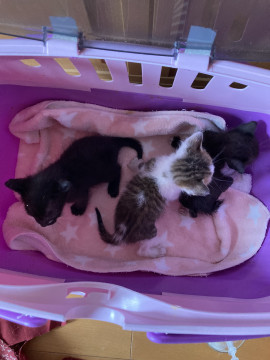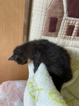 民家の駐車場の隅で子猫の鳴き声に家人が気づき、保護して後日届けられています。