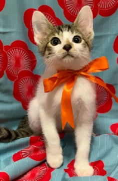 【コメント】 人馴れしていて、抱っこもできる。5匹の兄妹(キジ白・茶白)がいる