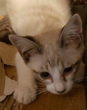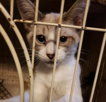 淡い色のブルーアイ、ラグドール風?の模様の男の子です。お外から保護した直後は、寂しそうにしていましたが、だいぶ活発になってきました。先住さんのいるおうちか、二匹一緒のご縁を希望いたします。