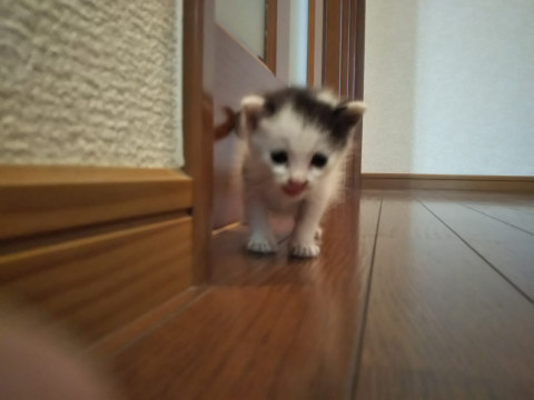 生後間もないのか、よちよちしながら歩きます。歯が生えてると思います。