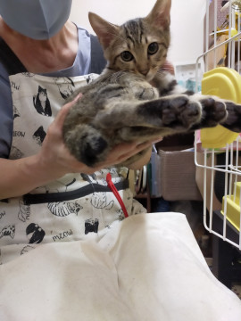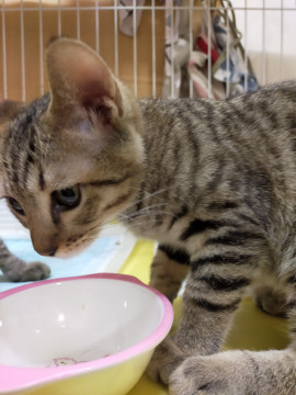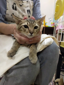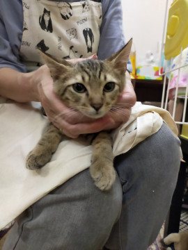 大阪市内の住宅地に兄妹猫さんと共にダンボールに入って捨てられていたところを保護しました。