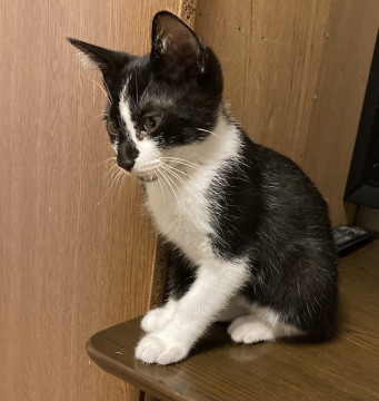 やんちゃに兄妹の子と遊んでいます。ゴロゴロふみふみします。はじめは人見知りするかもしれません。チュールとおもちゃが大好きです。甘えん坊の末っ子タイプです。