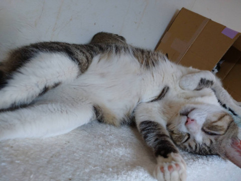 ◯保護されて来た当初はシャーシャー言っていて、人慣れはまだまだこれからか?と思われていました。が!なんとナデナデ出来る猫さんに変身しました!ここが安全な場所で人も怖くないと分かってくれたみたいです。これからどんな風になっていくのか楽しみです。