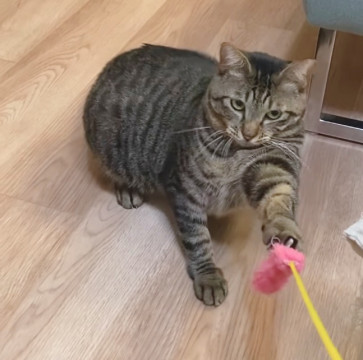 遊ぶのがが大好きで、おもちゃを見せると夢中で飛びついてきます。
