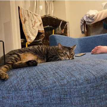 まだまだ家猫修行中で、ちょっとシャイなため人に触られたりなどは苦手ですが、引っ掻いたり噛んだりなどの攻撃はありません。
