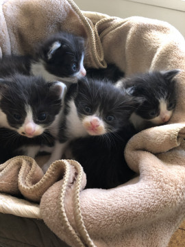 妊娠中の母猫を保護しようとしていましたが保護前に出産し、生後2週間の頃無事親子で保護することができました。人馴れしたかわいい子猫なので、これからのニャン生を優しい里親さんのもとで過ごしてほしいです。