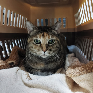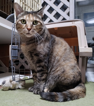 お寺の敷地で餌だけもらって暮らしていました。なかなか捕獲できず何度か出産していたので捕獲のお手伝いをし、穏やかな性格なので里親募集に切り替えました。