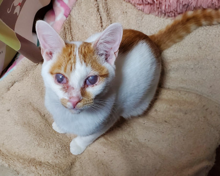 瞬膜の癒着がありますが生活には問題ありません。それもふぃーくんの個性と受け入れていただける方のご応募おまちしております。