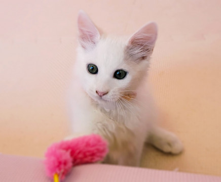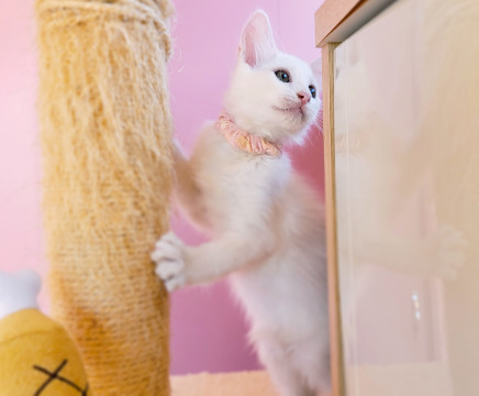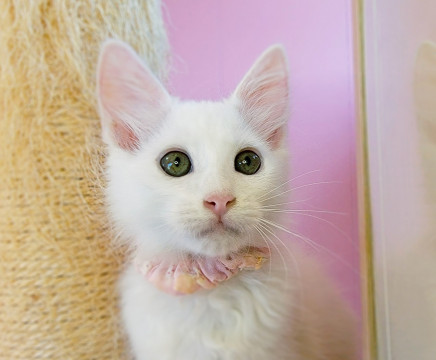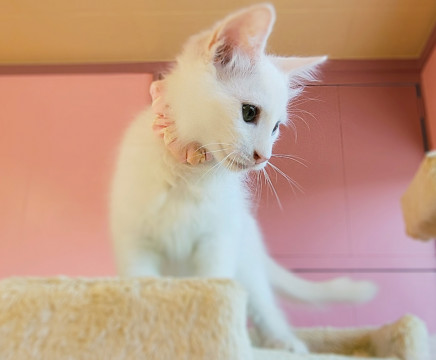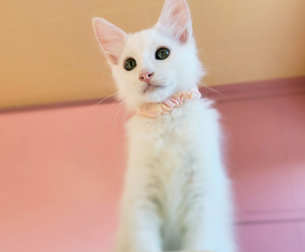真っ白フワフワなわたあめみたいな長毛白猫ちゃんです。