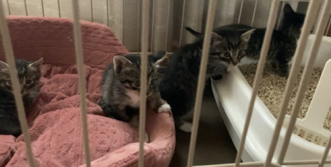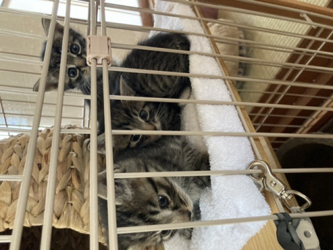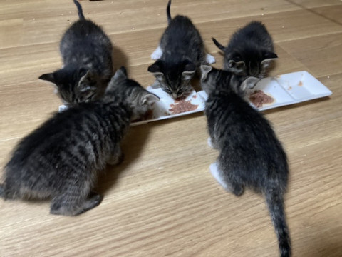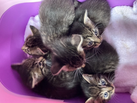9月中旬生まれと思われる生後1か月の子猫5匹です。