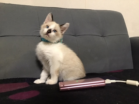 とても人慣れしていてトイレもしっかりできます。ブルーの瞳と鼻のあたまの黒い点がチャームポイントです!
