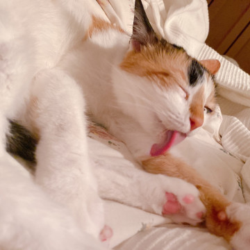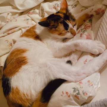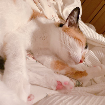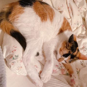 人馴れ抜群。おとなしい。人と添い寝します。抱っこも大好き。理想の三毛猫だと思います。避妊手術も済んでいるので、安心です。