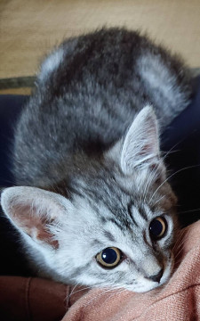 乳飲み子の時に保護して、ミルクから育てました。初期医療を済ませて人慣れしましたので里親募集します。