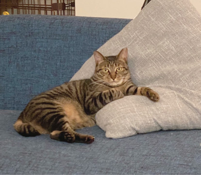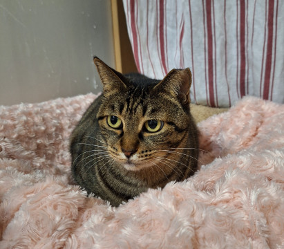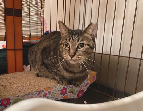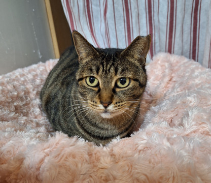 女の子らしいぽってりとした体格が可愛いキジトラおはぎちゃん。