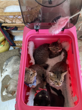 可愛い慣れた4匹の仔猫達を同時募集しています。2匹お迎えだと嬉しいですが、1匹でもご相談ください。