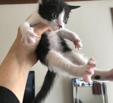 まだミルクですが、離乳も初めています。ミルクもよく飲んで元気です。ノミ、ダニ駆除しています。お母さん猫のウィルス検査しています。エイズ、白血病陰性です。