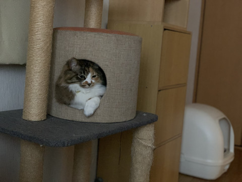 昨年10月終わりに会社敷地内でみつけました。人馴れしているようなので飼い猫が入ってきたと様子を観ていましたが住み着いてしまい12月に保護して近所や動物愛護センターなどで飼い主を捜索していましたが見つからず3ヶ月経過しました。警察に相談したところ私の所有扱いとして里親を探しても構わない。との回答をいただきましたのでこちらのサイトへ掲載いたします。