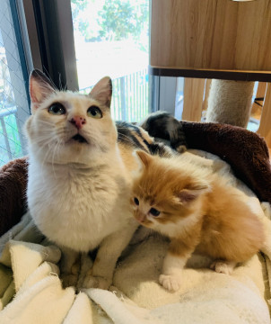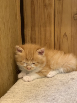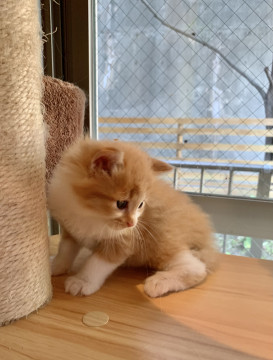 兄妹の中でも1番好奇心旺盛で、子猫ながら堂々とした魅力のある子です。