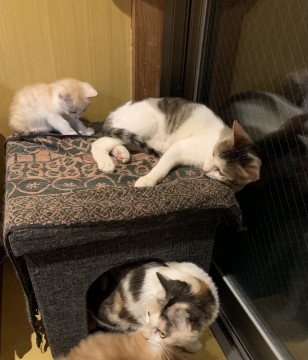 抱っこをしたらすぐにゴロゴロと言いながら気持ち良さそうに抱かれ、他の大きい子とも子猫とも仲良く遊びます。