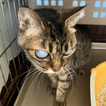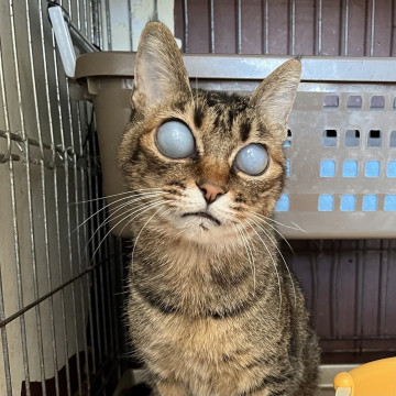 ★角膜混濁で両目が白濁していますが、全く見えないわけではなく、左眼は少しは見えているようです。